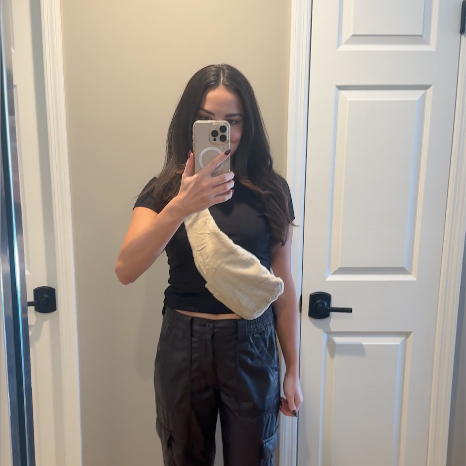 "Dit is echt zo goed! Ik was verrast over hoe goed de kwaliteit van het materiaal is en het is zo mooi en zacht. Ik draag het de hele dag met het kleine warmwaterkruikje aan de voorkant of de achterkant, afhankelijk van wat mijn lichaam wil!"